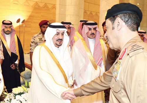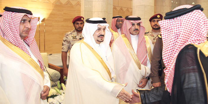 كما استقبل صاحب السمو الملكي الأمير فيصل بن بندر بن عبدالعزيز أمير منطقة الرياض بقصر الحكم أمس أصحاب السمو الأمراء وأصحاب الفضيلة العلماء، وأصحاب المعالي، وكبار مسؤولي منطقة الرياض، وكبار ضباط القوات المسلحة، والحرس الوطني، والأمن العام، وحرس الحدود، وقوات الأمن الخاصة، والدفاع المدني، والمرور، وجمعاً من المواطنين، الذين قدموا للسلام على سموه وتهنئته بعيد الفطر المبارك.
