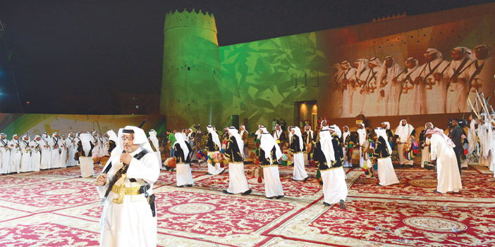 واتجه الزوار بعدها إلى ساحة المصمك لمشاهدة عرض مرئي بعنوان «ذاكرة الرياض» تناول رصدا للتحولات التنموية التي شهدتها العاصمة، تزامن معها سرد لحكايات تاريخية تكشف طريقة احتفال سكان مدينة الرياض بالعيد قديما، قبل أن تنطلق فعالية العرضة السعودية التي تفاعل معها الزوّار لما تمثله من عراقة تتصل بهوية المنطقة وتاريخها.
