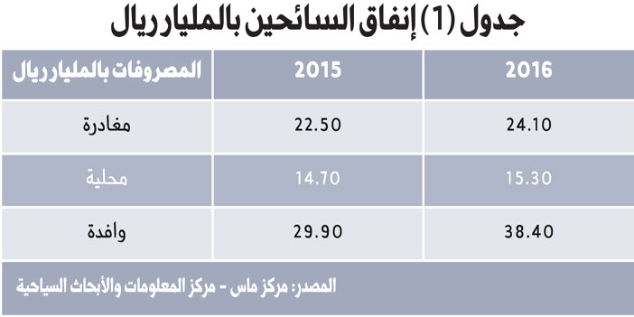 واقتصاديًّا، فإن قطاع السياحة من المتوقع أن يحقق مصروفات بقيمة 77.8 مليار ريال خلال عام 2016م، منها 24.1 مليار ريال مصروفات على السياحة المغادرة، مقابل 15.3 مليار ريال مصروفات للسياحة المحلية، ونحو 38.4 مليار ريال على السياحة الوافدة. وعليه، يتضح بوابة تنموية جديدة، تحتاج للرعاية والتنمية. فالسياحة الوافدة للمملكة رغم أن أعدادها لم تتجاوز 7.5 مليون سائح إلا أن نفقاتها مرتفعة للغاية، وبلغت في المتوسط للفرد نحو 5120 ريالاً مقابل نحو 3020 ريالاً في السياحة المغادرة، ونحو 987 ريالاً للسياحة المحلية.
