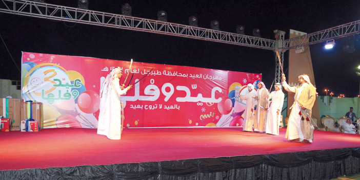 دشن محافظ طبرجل فيصل الشامي، مهرجان طبرجل «عيد وفلها3» وسط حضور جماهيري تجاوز 8 آلاف زائر . وقص المحافظ شريط الافتتاح بعد صلاة العشاء، وتجول على بيت الضيافة وهو بيت الشعر العربي، وكذلك أجنحة الأسر المنتجة من المنسوجات اليدوية والأكلات الشعبية والخيمة الشعبية . ثم بدئ الحفل على مسرح المهرجان بمشهد معايدة لجنودنا البواسل بالحد الجنوبي، ثم أوبريت بعدد من اللوحات للمملكة والجوف وطبرجل، قدمها المنشد واس المطوع، ومسرحية «الصراع» ذات الطابع الكوميدي من تأليف وتقديم وإخراج الفنان التلفزيوني المعرف مبارك الخضي.