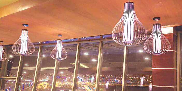 ويعد المطعم من أفخم المطاعم على مستوى المنطقة بخمسة نجوم وذلك لموقعه وفخامته ودورانه وفي مستوى عالٍ من الجمال ودقة في التنفيذ والأداء.