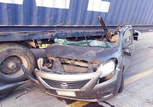 توفي شخص وأصيب اثنان بإصابات متوسطة مساء أمس إثر حادث تصادم بين مركبة وشاحنة على طريق ديراب مع طريق الإمام مسلم جنوب الرياض.
