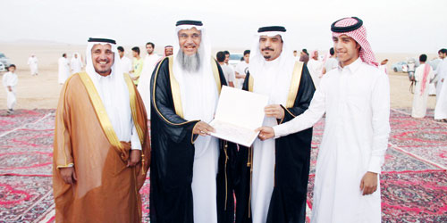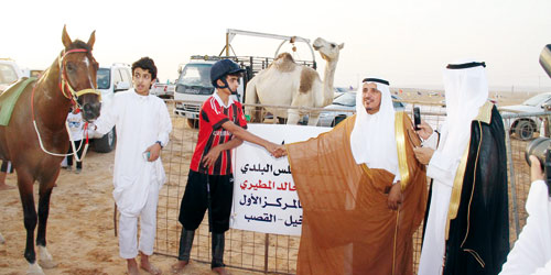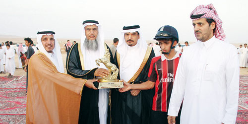 والثاني الفارس خالد الحصين والمالك سليمان المحيميد وحصل على المجسم الفضي ومبلغ مالي والفائز الثالث صالح المحيميد والمالك سعود الغربي وحصل على المجسم البرونزي ومبلغ مالي والفائز الرابع عبد الرحمن العنقري والمالك خالد الراشد مبلغ مالي والمركز الخامس عبد الملك المنيع والمالك عمر المنيع مبلغ مالي بعدها تم تكريم اللجان المشاركة في العيد والمتعاونة وأعضاء لجنة الاحتفالات ثم التقطت الصور التذكارية مع الفائزين والمسؤولين وفي الختام قدم رئيس اللجنة دغيشم الدغيشم شكره للداعمين والمشاركين ولجنة الاحتفالات والحضور على تفاعلهم في ختام فعاليات العيد لهذا العام وللمذيع المتألق عبدالله الحنيشل.