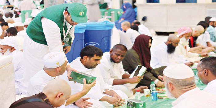 وأوضح إمام وخطيب المسجد الحرام رئيس مجلس إدارة الجمعية الشيخ صالح بن محمد آل طالب، أن الجمعية أعدت خطة لإنجاح موسم رمضان المبارك، وبفضل الله تعالى تم تنفيذها على الوجه الأكمل، حيث تم توزيع مليون و 400 ألف وجبة إفطار صائم منها 1.130.656 بالحرمين الشريفين وساحاتهما و 80.000 خدمة بمواقف سيارات المعتمرين والزائرين بمكة المكرمة، إضافة إلى 125.988 وجبة سحور بمكة والمدينة المنورة، كما تم تقديم 97.020 وجبة طوارئ في ليالي «25 - 27 - 29» بالمسجد الحرام وساحاته، إلى جانب تقديم 49.572 سلة ضمن برنامج قهوة وتمر إفطار وأجر بالحرمين الشريفين، بمشاركة أكثر من 500 مضيف و 300 مضيفة، وتأتي هذه الخدمات تحت برنامج غذاء البدن الذي يعنى بتقديم خدمات الإطعام والسقيا لقاصدي بيت الله الحرام.