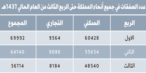 وانخفض الطلب على العقارات بأنواعها في المملكة إلى مستويات جديدة لم تشهدها السوق منذ عدة سنوات، حيث سجلت السوق خلال الربع الثالث من العام الثالث انخفاضا قدره 22 في المائة مقارنة بالربعين السابقين من العام الحالي، وبحسب البيانات الربعية التي كشف عنها المؤشر خلال الفترة الحالية للسوق العقارية، إِذ سجلت أرقامًا تدل على الضعف في أداء المؤشر بمختلف عروضه، وبنسب مؤثرة، بعد ركود السوق العقارية لمدة 9 شهور من العام الحالي، كون المؤشر شهد نزولاً متتاليًا في الطلب على السكني، أما التجاري فإن السوق شهد زيادة في مساحة الصفقات المباعة بالرغم من انخفاض القيمة التي كشف عنها المؤشر.