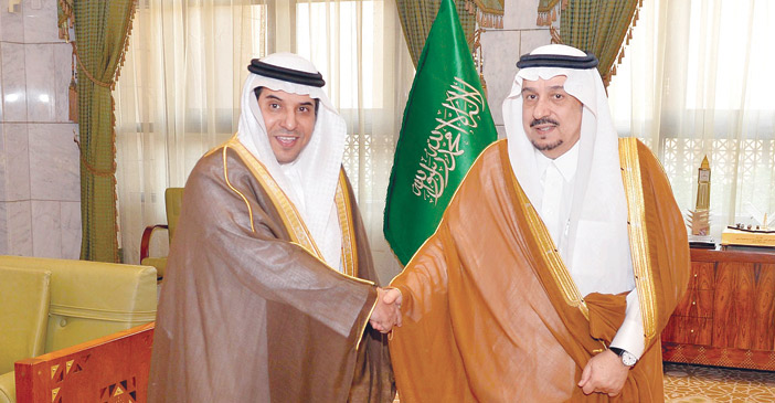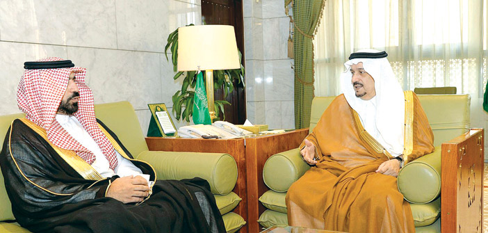 كما استقبل صاحب السمو الملكي الأمير فيصل بن بندر بن عبدالعزيز أمير منطقة الرياض بمكتبه بقصر الحكم أمس، مدير عام مكتب الهيئة العامة للرياضة بمنطقة الرياض خالد بن فهد الغميز، الذي قدم للسلام على سموه بمناسبة تعيينه في منصبه.
