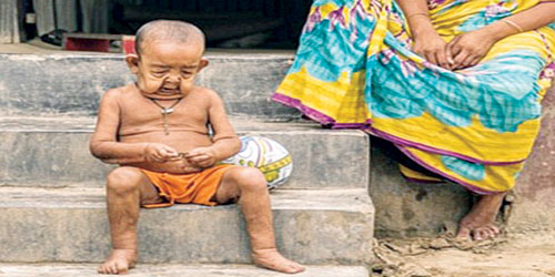 وأكد فريق من الأطباء على أن مرضى الشيخوخة المبكرة يموتون عادة من النوبات القلبية أو السكتات الدماغية بمتوسط سن 13 عاماً على الأكثر، وقالت «تريبتى خاتون» والدة الصبي البالغة من العمر 18 عاماً، إنها مندهشة من ذكاء ابنها، لكنه يكسر قلبها عند ظهوره بمظهر غير عادى للغاية.