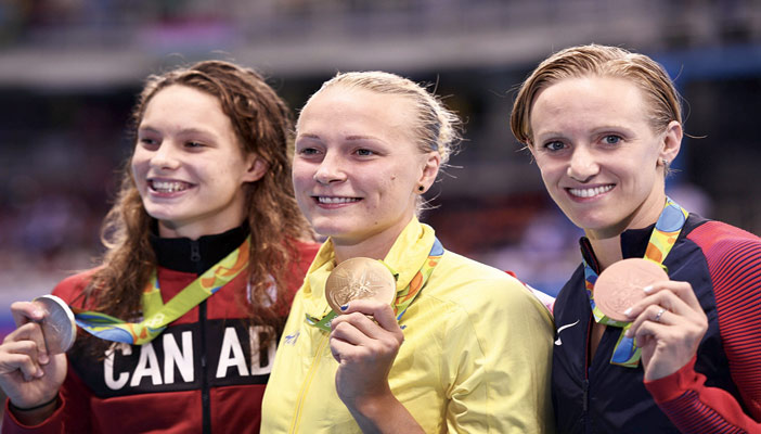 غيرت السويدية سارة سيوستروم عاداتها وحطمت الرقم العالمي محرزة ذهبية سباق 100 م فراشة. كشفت سيوستروم عن بعض التطير قبل خوضها السباق: «وضعت أقراطا في أذني اليوم، لم أقم بذلك أبدا، كما استمعت إلى الموسيقى لأول مرة قبل السباق». سجلت 48ر55 ثانية ماحية رقمها السابق الذي سجلته في اغسطس 2015 في قازان الروسية والبالغ 64ر55 ثانية، لتحطم الرقم العالمي للمرة الخامسة في مسيرتها بعد الأولى في 2009. وكانت سيوستروم حطمت الرقم الأولمبي أيضا السبت في نصف النهائي بزمن مقداره 84ر55 ثانية. وتفوقت سيوستروم بفارق كبير على الكندية اليافعة بيني اوليكسياك التي كسرت بدورها الرقم السابق (46ر56 ث)، والأميركية دانا فولمر (63ر56 ث). وكانت سيوستروم وعدت بعد نصف النهائي بمحاولتها تحطيم الرقم العالمي. وتوجت السباحة البالغة 22 عاما بلقب بطولة العالم في روما 2009 وبرشلونة 2013 وقازان 2015 وفي سباق 50 مر فراشة في قازان 2015، علما بأنها شاركت في 4 سباقات في أولمبياد لندن الأخير من دون أن تحرز أي ميدالية. وقالت سيوستروم: «يا له من شعور عندما تحطم الرقم العالمي وتحرز ذهبية. عرفت أني المرشحة الكبرى. كنت تحت الضغط، فحاولت التكريز على عدم حصول أي كارثة. قبل السباق قلت لنفسي هذا مجرد حوض سباحة. لم أكن متوترة كثيرا، كان مزاجي جيدا اليوم. عرفت أن 100 م حرة هي فرصتي الكبرى». وعن تحضيراتها قبل السباق، أضافت: «سبحت صباحا، وبعد الظهر حاولت الاسترخاء». أما فولمر صاحبة المركز الثالث فقالت: «أنا سعيدة للفوز بالبرونزية. لمست الحائط وقلت لنفسي: رجاء فلتكن ميدالية». وتنازلت فولمر (27 عاما) عن لقبها الأولمبي، علما بأنها أحرزت أيضا ذهبية أربع مرات 200 م حرة في اثينا 2004. وتركت فولمر السباحة بين 2013 و2015 عندما أنجبت ابنها ارلين، علما بأنها تحمل معها دوما جهاز إنعاش للقلب بعد خضوعها لجراحة في 2003. صاحبة الفضية اوليكسياك والبالغة 16 عاما أضافت: «هذا رائع جدا. لدي بضع سنوات كناشئة. تحدثت مع بعض زميلاتي في المدرسة وقدمن الدعم لي. ليلة أمس تحدثن عن سباقي الليلة».