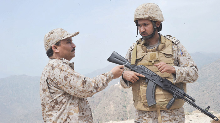 رصدت عدسة وكالة الأنباء السعودية في جولة ميدانية لمراسلها أمس الأعمال البطولية التي يقوم بها أفراد القوات المسلحة على امتداد الشريط الحدودي في منطقة جازان، من أجل الحفاظ على أمن الوطن وسلامة المواطنين، وردع من يحاول المساس بمقدرات الوطن.