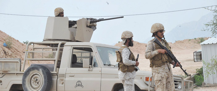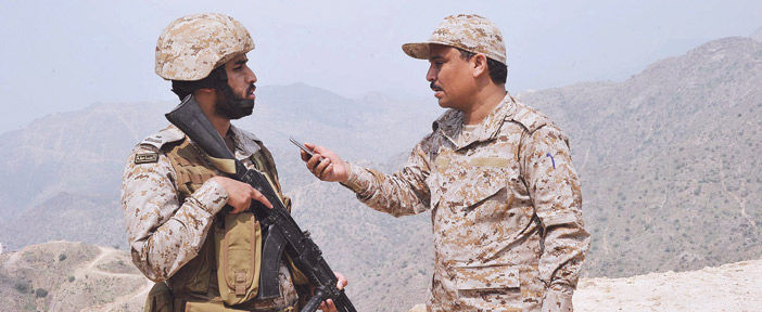 ويقوم جنودنا البواسل بعمليات تمشيط لحدود المملكة على مدارالساعة، مستخدمين أحدث أجهزة المراقبة المتطورة لمتابعة أي تحركات قد تطرأ في المنطقة والتعامل معها على الفور وفق ما تقتضيه الحالة بكل دقة وثقة وعزيمة منطلقين في ذلك من إيمان راسخ بالله تعالى وحرص على حماية الوطن ومقدراته والوقوف صفاً واحداً في وجه كل من تسول له نفسه النيل من أمن واستقرار وطننا العزيز. وأكد عدد من القادة الميدانيين لمراسل «واس» خلال الجولة جاهزية وكفاءة القوات المرابطة على الشريط الحدودي وقدرتها على التصدي لكل من يحاول المساس بأمن وسلامة بلاد الحرمين الشريفين، مشددين على أن قواتنا المسلحة السعودية الباسلة تحقق بالتعاون مع بقية قوات التحالف العربي الأخرى الإنجازات تلو الإنجازات والانتصارات عقب الانتصارات بشكل متواصل، كل ذلك بفضل الله ثم بجهود جنودنا البواسل وأعمالهم الشجاعة والمخلصة التي يقومون بها في ظل الحكومة الرشيدة بقيادة خادم الحرمين الشريفين الملك سلمان بن عبدالعزيز آل سعود - حفظه الله - وما يتمتعون به من روح معنوية عالية تلامس عنان السماء.