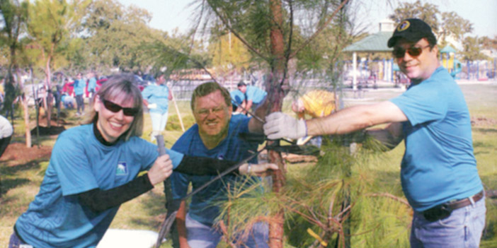 دخلت الشركة في شراكة مع منظمة الأشجار من أجل هيوستن غير الربحية منذ عام 2006م، حيث تقوم المنظمة بغرس آلاف الأشجار كل عام، مما يساعد على الحفاظ على نقاء الهواء، ويخفف تدفق مياه السيول، فضلاً عن تجميل مظهر المدينة وقد أمضى متطوعون من شركة خدمات أرامكو يومًا في غرس الأشجار للمساعدة في توفير تكاليف زراعتها، مما يتيح غرس المزيد من الأشجار.