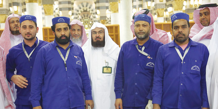 كما التقى معالي الرئيس العام بالعاملين بالمسجد النبوي وحثهم على تقديم أفضل الخدمات وأرقاها لتحقيق تطلعات ولاة الأمر بعد رضا الله سبحانه وتعالى وتوفيقه وقد أوصاهم بتقوى الله والإخلاص لله تعالى والجد والاجتهاد في العمل والسير على خطط موضوعة والاهتمام برقي الإنسان ليتناسب مع رقي المكان.