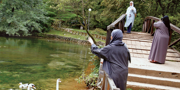 مجموعة من السياح الخليجيين مستمتعين بالطبيعة الساحرة والأجواء الصيفية المعتدلة في إحدى ضواحي البوسنة، مع تزايد الإقبال على السياحة هناك، وزيادة عدد الرحلات المباشرة وبناء منتجعات جديدة وإلغاء القيود على تأشيرات السفر.