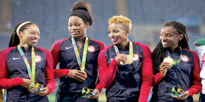 وأحرز رجال وسيدات الولايات المتحدة ذهبيتي سباق التتابع 4 مرات 400 م. وقطع عداؤوا الولايات المتحدة ارمان هال وتوني ماكواي وجيل روبرتس ولاشون ميريت مسافة السباق بزمن 30ر57ر2 دقيقة، وهو الأفضل لهم هذه السنة، وتقدموا على جامايكا (16ر58ر2 د) وباهامس (49ر58ر2 د). كما أحرزت سيدات الولايات المتحدة ذهبية السباق عينه؛ فواصلن سيطرتهن على اللقب الأولمبي، وتُوجن به للمرة السادسة على التوالي. وقطعت سيدات الولايات المتحدة كورتني اوكولو وناتاشا هاستينغز وفيليس فرانسيس واليسون فيليكس مسافة السباق بزمن 06ر19ر3 دقيقة، وهو الأفضل لهن هذه السنة، وتقدمن على جامايكا التي سجلت 34ر20ر3 دقيقة وبريطانيا الثالثة 88ر25ر3 دقيقة. وعززت فيليكس التي كانت المرأة الأكثر تتويجًا في الألعاب الأولمبية رصيدها بميدالية ذهبية سادسة، وهو رقم قياسي لدى العداءات. وأحرزت فيليكس أيضًا في ريو دي جانيرو ذهبية التتابع 4 مرات 100 م وفضية سباق 400 م. علمًا بأن سباقها المفضل هو 200 م وغابت عنه هذا العام؛ لأنها لم تحجز بطاقتها في التجارب الأمريكية في يونيو الماضي.