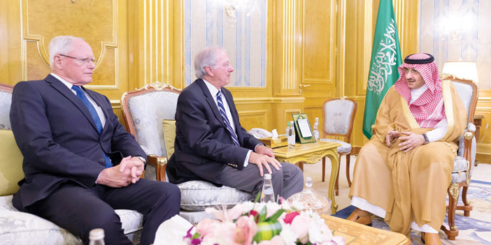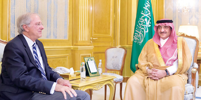 استقبل صاحب السمو الملكي الأمير محمد بن نايف بن عبدالعزيز ولي العهد نائب رئيس مجلس الوزراء وزير الداخلية حفظه الله في مكتبه بقصر السلام في جدة مساء أمس وفداً أمريكياً من الحزبين الجمهوري والديموقراطي يضم كلاً من، السفير دينيس روس، والسفير جيم جيفري، والسفير زلماي خليل زاده، والدكتور فيل قوردن، والدكتور روب دنن، والبروفيسورة ميغان أوسيلفان، والدكتور مات سبنس، والدكتورة سامانثا رافيش، ومايكل الن، وماريا سيكسكيلر، وميتشل هوتشبيرق. وجرى خلال الاستقبال بحث التعاون الأمني بين البلدين الصديقين خاصة فيما يتعلق بمكافحة الإرهاب، إلى جانب استعراض أوجه العلاقات بين البلدين في المجالات كافة.