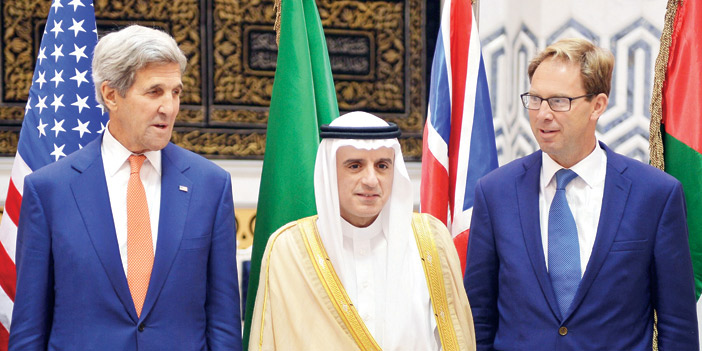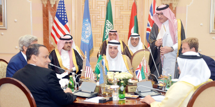 وكان قد عقد أصحاب السمو والمعالي وزراء خارجية دول مجلس التعاون لدول الخليج العربية بمحافظة جدة أمس برئاسة معالي وزير الخارجية رئيس الدورة الحالية للمجلس الوزاري الأستاذ عادل بن أحمد الجبير اجتماعاً مشتركا مع كل من معالي وزير الخارجية بالولايات المتحدة الأمريكية جون كيري ومعالي وزير الدولة البريطاني لشؤون الشرق الأوسط توبايس إلوود بحضور مبعوث الأمين العام للأمم المتحدة الى الجمهورية اليمنية اسماعيل ولد الشيخ أحمد، ومشاركة معالي الأمين العام لمجلس التعاون الدكتور عبداللطيف بن راشد الزياني.