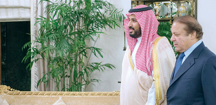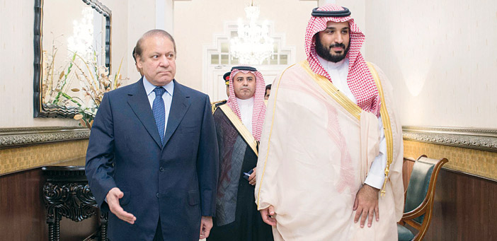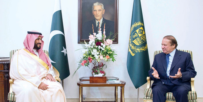 استقبل دولة رئيس الوزراء الباكستاني نواز شريف في إسلام أباد أمس صاحب السمو الملكي الأمير محمد بن سلمان بن عبد العزيز ولي ولي العهد النائب الثاني لرئيس مجلس الوزراء وزير الدفاع.