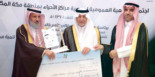وهنأ الأمير خالد الأحياء الفائزة، داعيًا التي لم يحالفها الحظ إلى بذل المزيد من الجهود لنيل الجائزة، ومقدمًا سموه الشكر لكل من كان له دور في جمعيات الأحياء نظير ما قدموه من جهد ومال، يطلبون فيه المثوبة من الله. كما قدم الأمير خالد الشكر لوزير العمل والشؤون الاجتماعية على عناية وزارته بمراكز الأحياء، ومتابعة العمل فيها، خاصًّا بالشكر فرع الوزارة بمنطقة مكة المكرمة ومنسوبيه.
