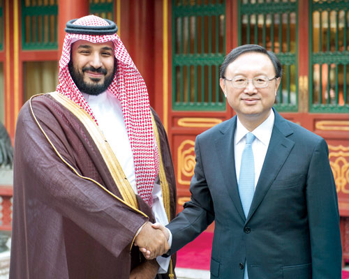 التقى صاحب السمو الملكي الأمير محمد بن سلمان بن عبدالعزيز ولي ولي العهد النائب الثاني لرئيس مجلس الوزراء وزير الدفاع في العاصمة الصينية بكين أمس، مستشار الدولة الصيني يانغ جيه تشي بحضور عدد من المسؤولين في البلدين.