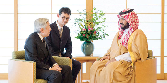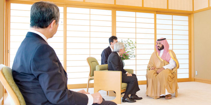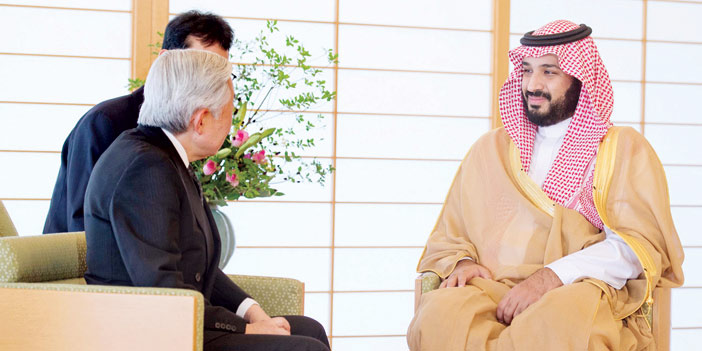 استقبل جلالة الإمبراطور أكيهيتو إمبراطور اليابان في القصر الإمبراطوري في طوكيو صباح أمس صاحب السمو الملكي الأمير محمد بن سلمان بن عبدالعزيز ولي ولي العهد النائب الثاني لرئيس مجلس الوزراء وزير الدفاع .