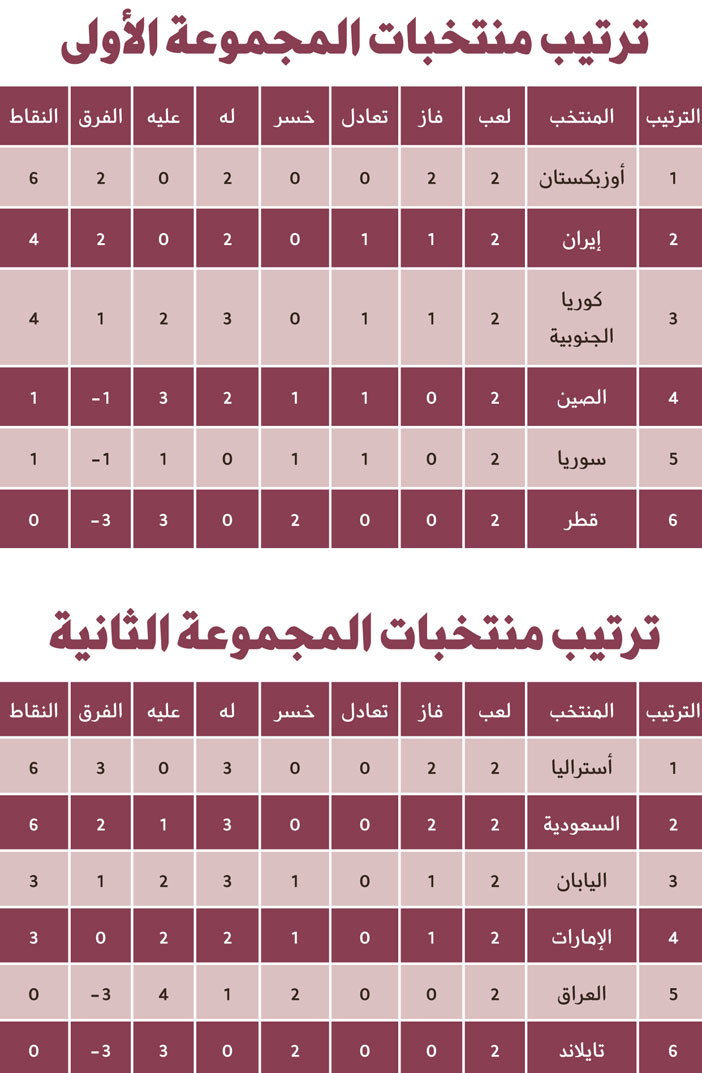 وبذلك حصد الأخضر 6 نقاط من جولتين بينما لايزال العراق بدون أي نقاط في نهاية الجولة الثانية من التصفيات.