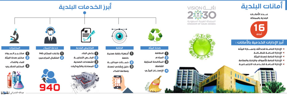 من أهم بنود الرؤية في 2030 تطوير الموارد الذاتية للامانات من خلال تطوير (الاستثمار الكامن) في المدن وذلك بتطوير البنية الاستثمارية للمدن بما يضمن العيش الرغيد للإنسان في المدينة وتوفير الخدمات له بسعر يوازي ما ينفقه وخاصة تطوير البيئة المعيشية للمدن وتطوير المرافق السياحية التي يمكن أن توفر دخلا للأمانات مقابل تخفيض الاحتكار والغلاء الفاحش في بعض الخدمات مثل المنتزهات والترفيه ووسائل النقل العام.