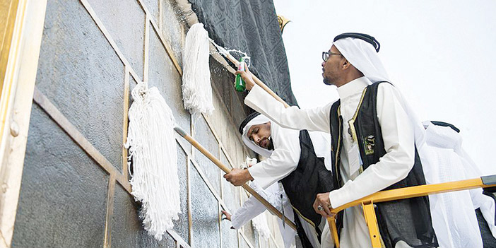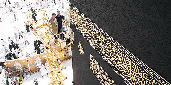 اكتست الكعبة المشرفة صباح أمس كسوتها الجديدة، وذلك جريا على العادة السنوية في اليوم التاسع من ذي الحجة من كل عام ،حيث قام منسوبو الرئاسة العامة لشؤون المسجد الحرام والمسجد النبوي ومصنع كسوة الكعبة بإنزال ثوب الكعبة القديم واستبداله بثوب جديد صُنع من الحرير الخالص.