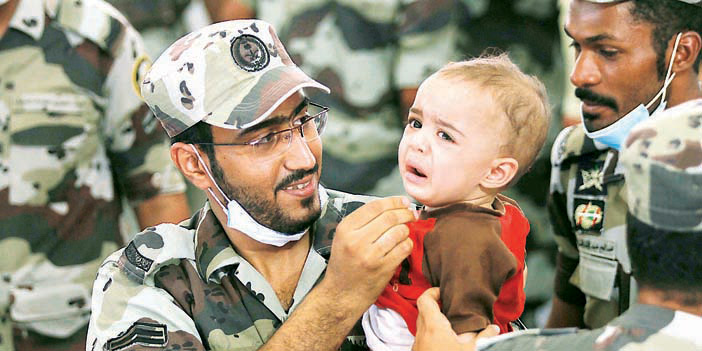 تخطت مهمة رجال الأمن المشاركين في موسم الحج من مهامهم الأساسية في التنظيم وإدارة الحشود، إلى أعمال إنسانية وخيرية، وأصبح رجل الأمن في الحج يعمل في كل الوظائف، يساعد الكبار، يداعب الأطفال، يعطي المعاقين الأولوية، يتطوعون في مساعدة المحتاجين، يرشون الماء البارد على الحجيج، يأكلون معهم، يتفقدونهم. ومن يلحظ رجال الأمن في موسم الحج يعلم ذلك ويشعر بمدى الخدمات التي يقوم بها رجال الأمن من تلقاء أنفسهم، ورصدت عدسة «الجزيرة» الكثير من المشاهد الحية الإنسانية لرجال الأمن، وفي هذه الصور، تتبع مصور الجزيرة عدد من رجال الأمن مع أحدى الأطفال المعاقين، حيث قاموا بمداعبته والحديث معه وتبادل الضحك، وأعطوه بعد ذلك بعض الحجارة ورفعوه لرمي الجمرات، ومن ثم أعادوه لأهله.
