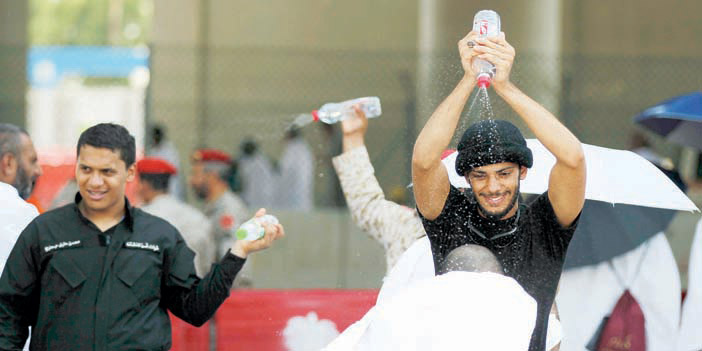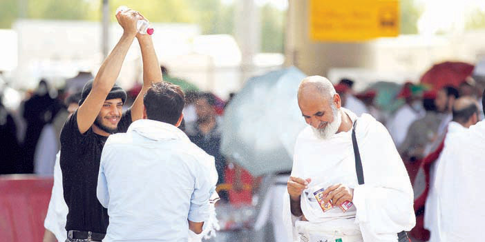 وفي هذا المشهد، ليس بمستغرب على رجال قوات أمن المنشآت حيث قدم العقيد المهيزع الارشاد لبعض الحجاج والتوجيه للبعض الآخر، وقدم أحد أفراده الماء البارد والمرطبات للاطفال وكبار السن من الحجاج، والثاني يرش رذاذ الماء على الحجاج ليلطف حرارة الجو، وثالث يتلقف طفلاً، وسط ابتسامة تسبق الخدمة، وآخر يساعد مسنا قد أعياه التعب وحرارة الشمس فأخذ بيده وأجلسه في أحد المواقع البعيدة عن أشعة الشمس، وبادر بإحضار الماء البارد ليسقيه، فرجال قوات أمن المنشآت لديهم عزيمة وإخلاص في العمل الذي يتطلع الكثير له وينظر له انه اشرف عمل يؤديه الانسان في خدمة بيت الله الحرام وخدمة القاصدين له والقادمين له من جميع أنحاء العالم فهم رجال قوات أمن المنشآت مؤهلون للتعامل مع جميع الحالات الأمنية والإنسانية والاجتماعية من خلال عملهم الجبار الذي لا يدركه أي حاج، وحريصون على التعامل الإنساني مع حجاج بيت الله الحرام، يتسابقون إلى تقديم المساعدة لكل حاج محتاج أو يطلب المساعدة.