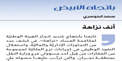 * نتمنى من نزاهة تتبع السيارات الحكومية فبعض الموظفين لديه بدل نقل وسيارة حكومية ويصرف وقوداً وتسجل باسم الجهة الحكومية وتستلم استلاماً داخلياً.