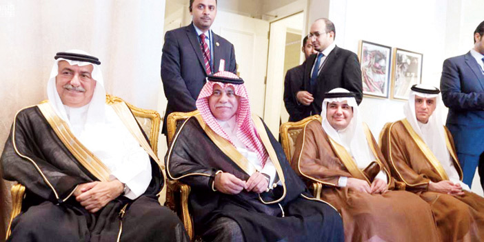 حضر الاستقبال صاحب السمو الأمير عبدالله بن فيصل بن تركي سفير خادم الحرمين الشريفين لدى الولايات المتحدة الأمريكية، وصاحب السمو الملكي الأمير عبدالعزيز بن سعود بن نايف بن عبدالعزيز مستشار سمو وزير الداخلية، ومعالي وزير المالية الدكتور إبراهيم بن عبدالعزيز العساف، ومعالي وزير التجارة والاستثمار الدكتور ماجد بن عبدالله القصبي، ومعالي وزير الثقافة والإعلام الدكتور عادل بن زيد الطريفي، ومعالي وزير الخارجية الأستاذ عادل بن أحمد الجبير، ومعالي المندوب الدائم للمملكة العربية السعودية لدى منظمة الأمم المتحدة السفير عبدالله بن يحيى المعلمي، ومعالي نائب مدير عام المباحث الفريق عبدالله بن علي القرني.
