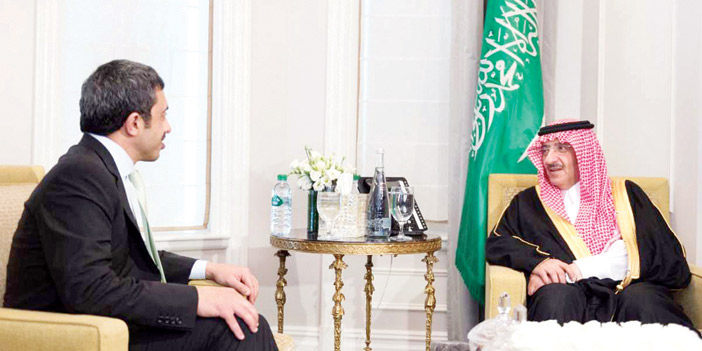 كما التقى صاحب السمو الملكي الأمير محمد بن نايف بن عبدالعزيز ولي العهد نائب رئيس مجلس الوزراء وزير الداخلية رئيس وفد المملكة في أعمال الدورة السنوية الـ71 للجمعية العامة للأمم المتحدة في مقر إقامة سموه بنيويورك مساء أمس سمو الشيخ عبدالله بن زايد آل نهيان وزير الخارجية بدولة الإمارات العربية المتحدة. وأشاد سمو الشيخ عبدالله بن زايد في بداية اللقاء بكلمة المملكة الضافية التي ألقاها سمو ولي العهد أمس في أعمال الدورة السنوية الـ71 للجمعية العامة للأمم المتحدة.