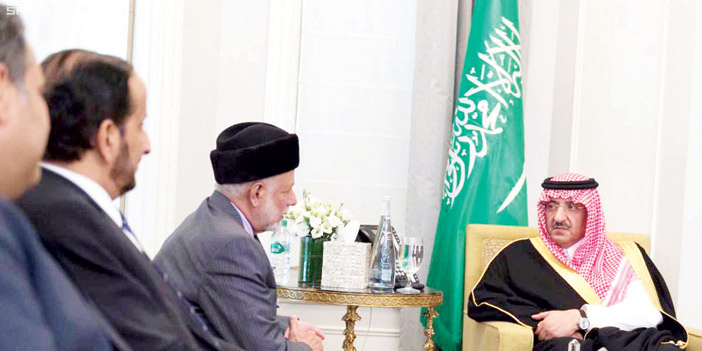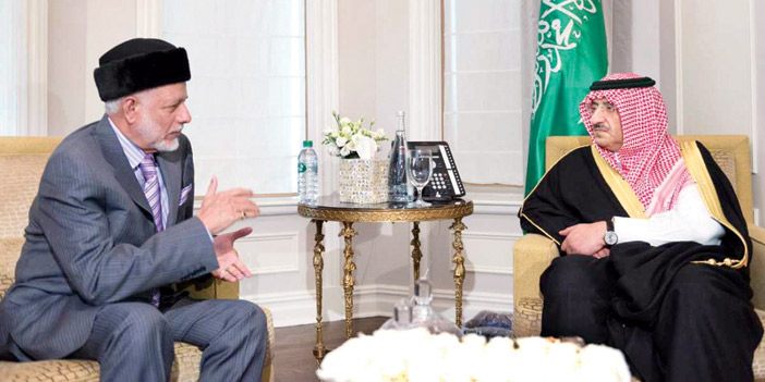 كما التقى صاحب السمو الملكي الأمير محمد بن نايف بن عبدالعزيز ولي العهد نائب رئيس مجلس الوزراء وزير الداخلية رئيس وفد المملكة في أعمال الدورة السنوية الـ71 للجمعية العامة للأمم المتحدة في مقر إقامة سموه بنيويورك مساء أمس معالي وزير الشؤون الخارجية في سلطنة عمان يوسف بن علوي بن عبدالله. وجرى خلال اللقاء استعراض العلاقات الثنائية بين البلدين الشقيقين، بالإضافة إلى بحث آخر تطورات الأحداث في المنطقة وموقف البلدين منها.