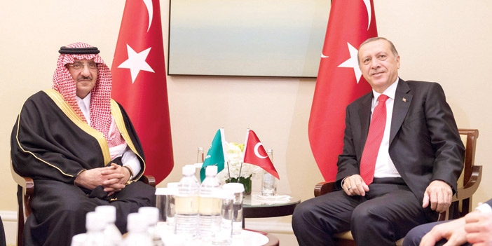 بحث صاحب السمو الملكي الأمير محمد بن نايف بن عبدالعزيز ولي العهد نائب رئيس مجلس الوزراء وزير الداخلية رئيس وفد المملكة في أعمال الدورة السنوية الـ(71) للجمعية العامة للأمم المتحدة -حفظه الله- مع فخامة الرئيس رجب طيب أردوغان رئيس جمهورية تركيا العلاقات الثنائية التي تربط بين المملكة وتركيا.