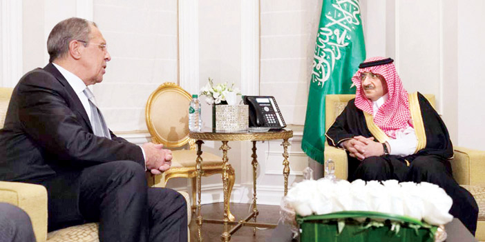 من جهة أخرى التقى صاحب السمو الملكي الأمير محمد بن نايف بن عبدالعزيز ولي العهد نائب رئيس مجلس الوزراء وزير الداخلية رئيس وفد المملكة في أعمال الدورة السنوية الـ(71) للجمعية العامة للأمم المتحدة -حفظه الله-، في مقر إقامة سموه في نيويورك مساء أمس الأول، معالي وزير الخارجية الروسي سيرجي لافروف.