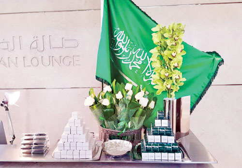 وقد أقيم حفل بهذه المناسبة الغالية للوطن والمواطنين في صالة الفرسان بالصالة الدولية لمطار الملك خالد الدولي بالرياض، حيث قام مدير عام الخطوط السعودية المهندس صالح الجاسر بتقديم الهدايا الرمزية للمسافرين على الرحلات الدولية وهدايا خاصة للأطفال تحمل شعار صالة الفرسان بالإضافة إلى تقديم باقات ورد وعلب شكولاته للمسافرين وعوائلهم في بادرة وجدت أصداءً طيبة من المسافرين الذين اعتادوا مثل هذه المبادرات الرائعة من قبل صالة الفرسان التي عودت عملاءها على المشاركة في المناسبات الوطنية.