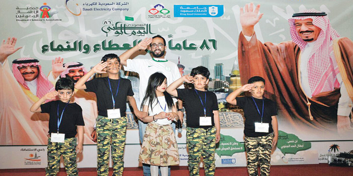 احتفل نادي المسؤولية الاجتماعية بجامعة الملك سعود وبرعاية حصرية من الشركة السعودية للكهرباء وشراكة مع جمعية الأطفال المعوقين باليوم الوطني من خلال حزمة برامج واكبت هذا اليوم حيث نفذ البرنامج احتفالاً في مركز غرناطة مول واستفاد منه أكثر من 2000 زائر وعدد من ذوي الاحتياجات الخاصة، كما احتفل النادي في مركز حياة مول واستفاد منه 1800 زائر وكذلك في مركز تشيكي تشيز للأطفال. ويشمل الاحتفال تدشين مسرح خاص للاحتفال وبعض الفعاليات المصاحبة حيث تم إطلاق أوبريت: كلنا سلمان وأيضًا عرض 50 لوحة تحمل إبداعات ذوي الاحتياجات الخاصة عن الوطن وكذلك وجود مرسم خاص للأطفال لاحتضان إبداعات الأطفال الزوار ورؤيتهم للمملكة وكذلك ركن التصوير حيث يحملون الزوار لوحات تحمل رسائل في حب الوطن وينم تصويرهم مع هذه اللوحات وتسليمهم الصور لكي تبقى ذكرى لهم كما تم جمع أكثر من 2500 توقيع على اللوحة الخاصة من قبل الزوار التي تم نصبها في وسط المولات.وفي هذا الصدد أكَّدت الشركة السعودية للكهرباء أن رعايتها لفعاليات واحتفالات اليوم الوطني الذي تنظمه جامعة الملك سعود بالرياض جزء لا يتجزأ من احتفائها بكافة قطاعاتها ومواقعها بهذه المناسبة المباركة التي تمثل ذكرى عزيزة وغالية على كافة أبناء الشعب السعودي.