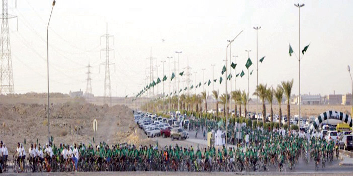 شهد سباق ماراثون الدراجات الهوائية الذي أقيم ضمن فعاليات أمانة منطقة الرياض بمناسبة ذكرى اليوم الوطني الـ 86، مشاركة 1000 درّاج ارتدوا شعارات وطنية تمثل ذكرى تأسيس المملكة، وأعلاماً ولافتات متضمنة صورًا وعبارات عن دعم جنودنا المرابطين، تأكيداً على التضامن معهم، والعرفان والشكر لدورهم في حماية أمن الوطن. وانطلق مسار الماراثون من تقاطع طريق الملك عبد الله حتى تقاطع طريق أنس بن مالك، من خلالها تم رسم رقم 86 بواسطة الدراجات الهوائية، حيث بلغت مسافة المسيرة 20 كيلاً. وعبّر الدراجون عن سعادتهم للمشاركة في هذا الماراثون الذي يُعَد من ضمن أبرز الفعاليات التي أقيمت بهذه المناسبة على مستوى المملكة.