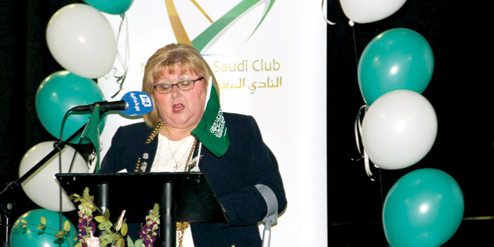 بعد ذلك تحدثت عمدة نيوكاسل اللورد مايور هازل ستيفنزن والتي تحضر لأول مرة مثل هذه المناسبة، قائلة من دواعي سروري أن أكون بينكم لأشارك في هذه المناسبة السعيدة التي يعيشها أبناء المملكة العربية السعودية في نيوكاسل بذكرى اليوم الوطني، وأتمنى لكم ولبلادكم التطور والازدهار. وتابعت اللورد هازل بقولها: ونشكر لكم هذه الدعوة، كما أنني أشيد بالدور الإيجابي الذي يبذله الطلبة السعوديون في نيوكاسل مع مؤسسات المجتمع المحلي والمجتمع البريطاني، ودورهم التطوعي في خدمة الطلبة. واختتمت حديثها بالقول: أتمنى لكم التوفيق.