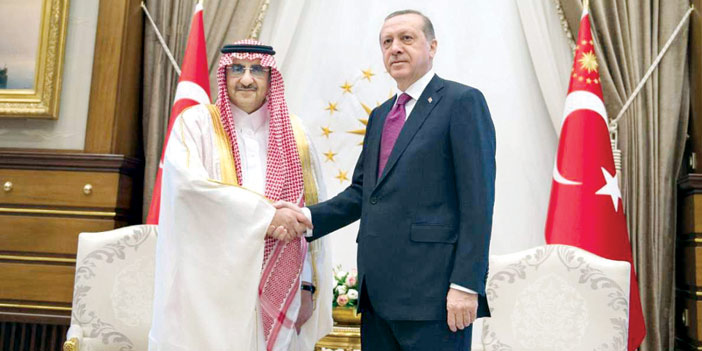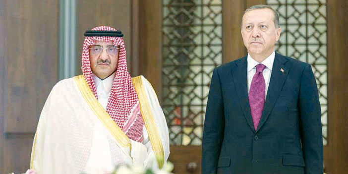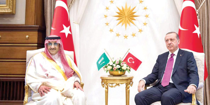 استقبل فخامة الرئيس رجب طيب أردوغان رئيس جمهورية تركيا في القصر الرئاسي بأنقرة أمس صاحب السمو الملكي الأمير محمد بن نايف بن عبد العزيز ولي العهد نائب رئيس مجلس الوزراء وزير الداخلية.