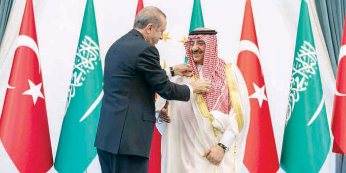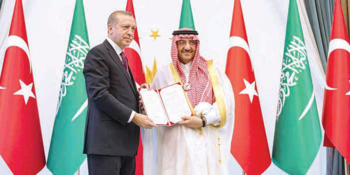 إثر ذلك قلد فخامة الرئيس رجب طيب أردوغان رئيس جمهورية تركيا، صاحب السمو الملكي الأمير محمد بن نايف بن عبدالعزيز ولي العهد نائب رئيس مجلس الوزراء وزير الداخلية وسام (الجمهورية).