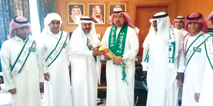 من جانبه عبر مدير التعليم عن شكره وامتنانه لسعادة المحافظ على استقباله وما يحظى به التعليم من اهتمام من ولاة الامر حفظهم الله و توجيه ودعم وتعاون من محافظ محايل كما قدم مجموعة من الطلاب الكلمات والإهداءات الوطنية والورود تعبيراً عن الفرحة بهذا اليوم المجيد.