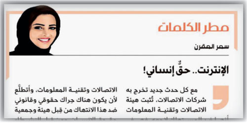 * للأسف هيئة الاتصالات السعودية تقف بجانب مشغلي خدمة الإنترنت في مواجهة المواطنين وعدم الضغط على الشركات المشغلة لإجبارها على تخفيض أجور الإنترنت.