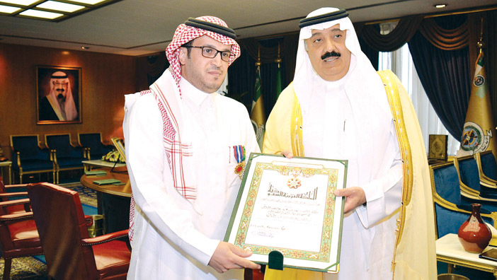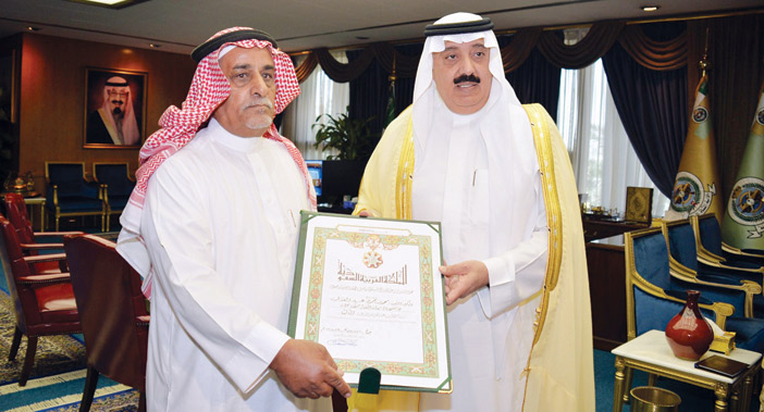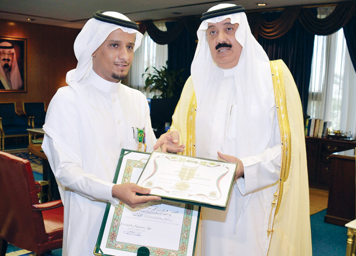 وقلد سموه خلال الاستقبال وسام الملك عبد العزيز من الدرجة الثالثة ونوط الشرف لذوي شهداء الواجب وهم ناصر بن فهد السبيعي أخ الشهيد الرقيب أول ماجد بن فهد السبيعي، ومناور بن غازي البقمي أخ الشهيد وكيل رقيب نائر بن غازي البقمي، وعبد الله بن محمد الريثي أخ الشهيد العريف علي بن محمد الريثي، ومحمد بن سعد السبيعي أخ الشهيد الرقيب جلوي بن سعد السبيعي، وعايض بن محمد القحطاني أخ الشهيد العريف طامي بن محمد القحطاني، وعيد بن عايض الرويثي والد الشهيد وكيل رقيب بندر بن عيد الرويثي، وحمود بن عيد العنزي والد الشهيد العريف محمد بن حمود العنزي، وذلك إثر صدور الأمر السامي الكريم بهذا الخصوص.