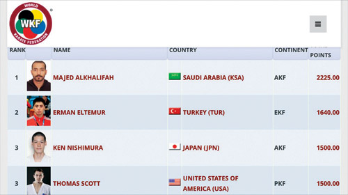 ماجد الخليفة لاعب نادي الهلال انطلق من المغرب لتتوهج نجوميته وموهبته الفذة ليتوجه الاتحاد الدولي للكاراتيه بلقب الاول عالميا بالتصنيف الدولي لوزن (75كجم) بعد ان شهدت اليابان مراسم ختام منافسات جولات الدوري العالمي (عشر جولات منذ مطلع العام الميلادي الحالي) حيث استطاع الخليفة ان يحقق (2225) نقطة بفارق (585) عن صاحب المركز الثاني التركي أرمان تيمور، حيث تم تكريمه وتسليمه مكافأة مالية نظير انجازه العالمي بجانب زميله البطل عماد المالكي الذي اعتلى عرش العالم لوزن (تحت 60 كجم) بالتصنيف الدولي.
