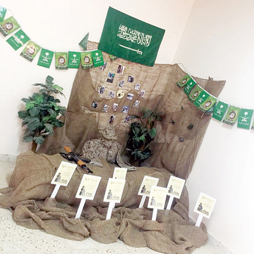 بعد ذلك تم التجول بالأركان التي أعدتها منسوبات المدرسة والتي كانت عبارة عن ركن (رسالة إلى جندي) وركن (الوطن بلمستي الفنية) وركن (للمطويات الخاصة بالملك عبدالعزيز وأبنائه)