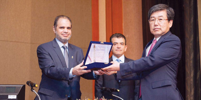 كما كرّم الوزير العيسى عميد كلية الهندسة في جامعة KPU كيم يون كن وباقي أعضاء فريق العمل على جهودهم في تنفيذ القاموس.