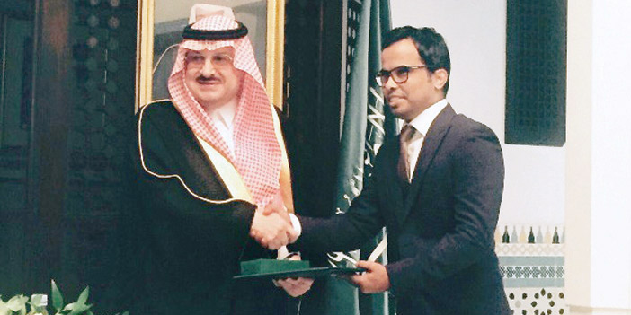 كرم سفير خادم الحرمين الشريفين في المملكة المتحدة صاحب السمو الملكي الأمير محمد بن نواف بن عبد العزيز المبتعث من جامعة المجمعة الطالب صالح أميلح صالح الرشيدي نظير تفوقه دراسياً وبحثياً خلال الأعوام الدراسية الماضية ونشره للأوراق العلمية حيث يمنح هذا التكريم بناءً على التفوق الدراسي للطلاب في كل عام دراسي أمضوه ويعتمد على تقرير المشرف الدراسي والمشاركة السنوية بورقة علمية سواءً في مؤتمر أو في مجلة علمية وكان المبتعث الرشيدي قد حصل في الأعوام السابقة على مكافأة التميز من الملحقية وتم وضع اسمه في لوحة الشرف للطلبة المتفوقين في موقع الملحقية الثقافية، كما حقق ذلك التميز من خلال المنشورات العلمية, وهي: ورقتان علميتان, ورقة كجزء من كتاب علمي في بريطاني وأربع مؤتمرات علمية في عدة دول ولديه ورقة علمية مقبولة في كتاب Handbook on Digital Learning for K-12 Schools المختص في التعليم الرقمي في بريطانيا ستنشر في أشهر دار نشر علمية.