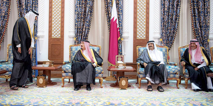 ولدى وصول خادم الحرمين الشريفين المطار بالعاصمة القطرية الدوحة، كان في مقدمة مستقبليه صاحب السمو الشيخ تميم بن حمد آل ثاني أمير دولة قطر، وسمو الشيخ جاسم بن حمد آل ثاني الممثل الشخصي للأمير، ومعالي الشيخ عبد الله بن ناصر آل ثاني رئيس مجلس الوزراء وزير الداخلية، وسمو الشيخ جوعان بن حمد آل ثاني، وسمو الشيخ محمد بن حمد آل ثاني، وسمو الشيخ خليفة بن حمد آل ثاني، وسفير خادم الحرمين الشريفين لدى دولة قطر عبد الله العيفان وعدد من المسؤولين.