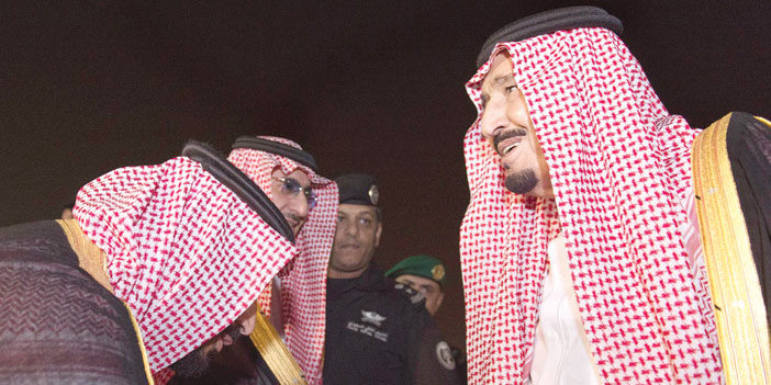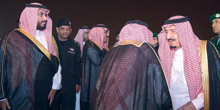 وكان في استقبال خادم الحرمين الشريفين بمطار قاعدة الملك سلمان الجوية، صاحب السمو الملكي الأمير فيصل بن بندر بن عبدالعزيز أمير منطقة الرياض، وصاحب السمو الملكي الأمير محمد بن نايف بن عبدالعزيز ولي العهد نائب رئيس مجلس الوزراء وزير الداخلية، وصاحب السمو الملكي الأمير محمد بن سلمان بن عبدالعزيز ولي ولي العهد النائب الثاني لرئيس مجلس الوزراء وزير الدفاع، وصاحب السمو الملكي الأمير عبدالعزيز بن سعود بن نايف بن عبدالعزيز مستشار سمو وزير الداخلية.